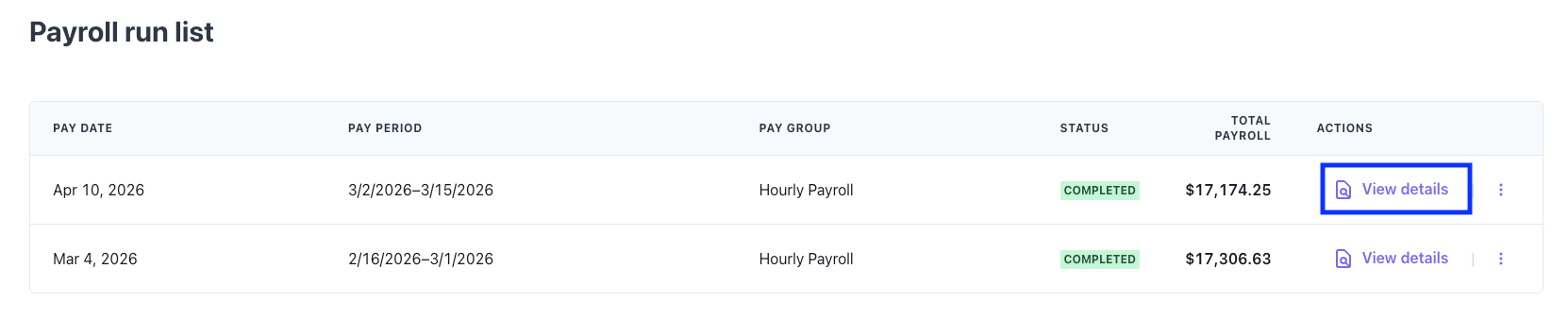 Click on View Details of the associated payroll run you processed, you will see the list of workers paid and whether their payment is complete, in progress or failed.