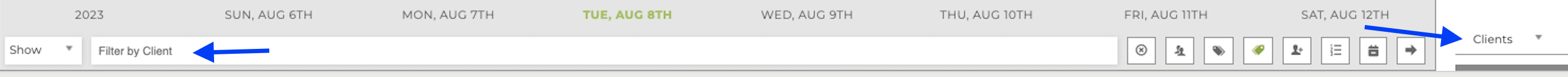 On the Scheduling Dashboard, you can select a variety of filters from the top of the schedule.