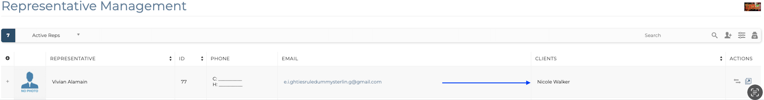 1. Access Menu>Clients>Representative Management. Make sure the client is attached to the representative.