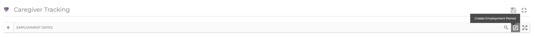 7. To update the Employment Dates, click the Caregivers section in the staff member's profile. Select the Create Employment Period option to the right of the Employment Dates field.