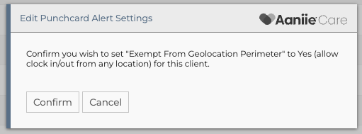 Access the client's profile and under priority info select the pencil next to the filed titled, Exempt From Geolocation Perimeter.