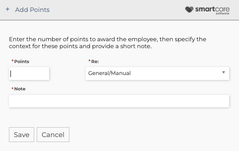 5. When you add or remove points you will get a pop up where you enter the amount of points to add or remove and select a RE: and add a Note. Click, Save when complete.