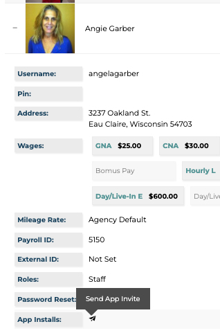 2. A list of options will appear under the staff's name, find the field labeled App Installs. Click on airplane icon.