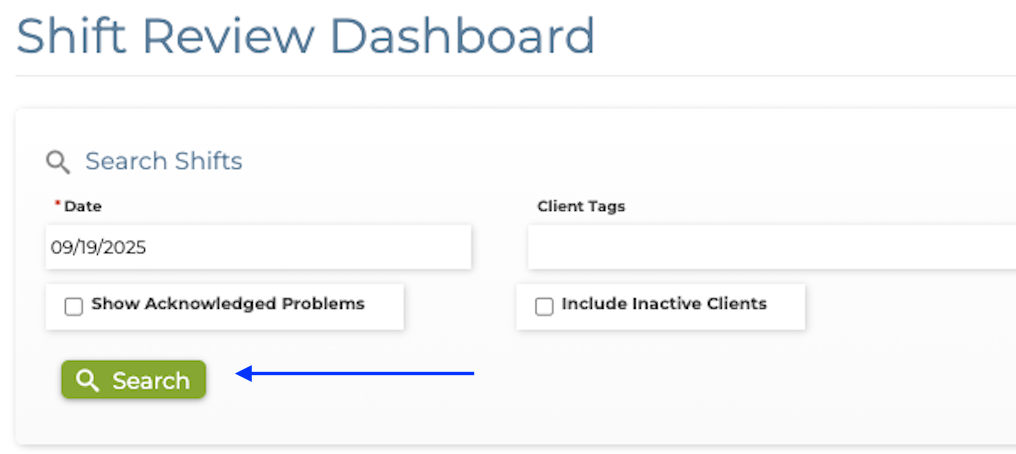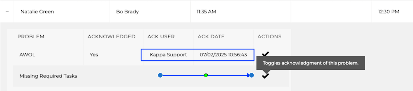 Show Acknowledged Problems - Check the box if you would like to see shifts problems that have already been acknowledged.