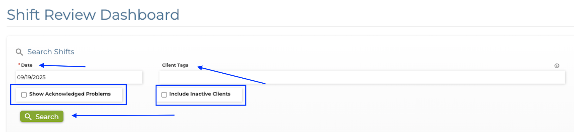 Client Tags - The ability to search out problem shifts associated with a client tag on a selected date. This would be helpful when there are many shifts on one day.